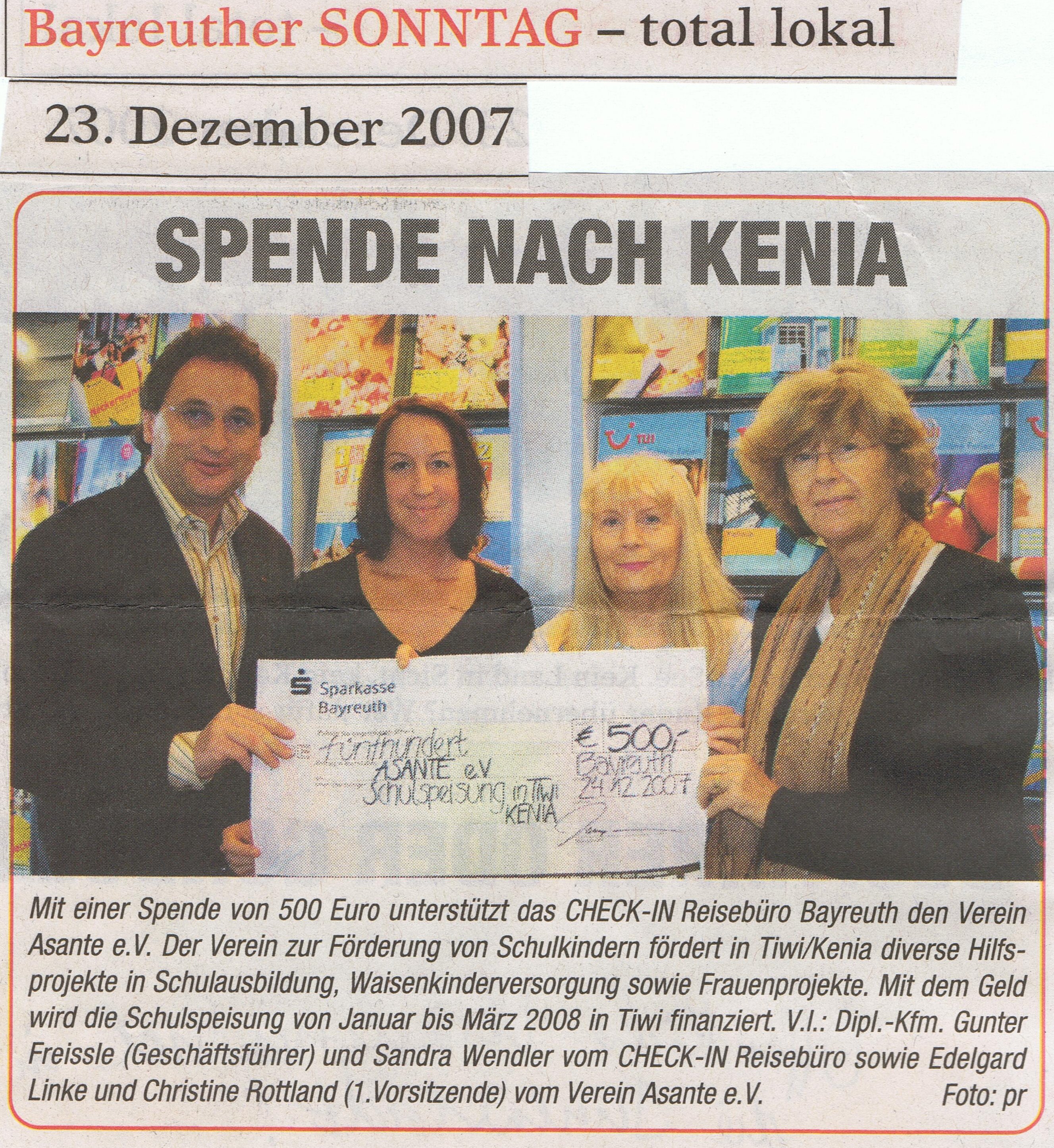 Spende von Check-In Reisebüro Bayreuth